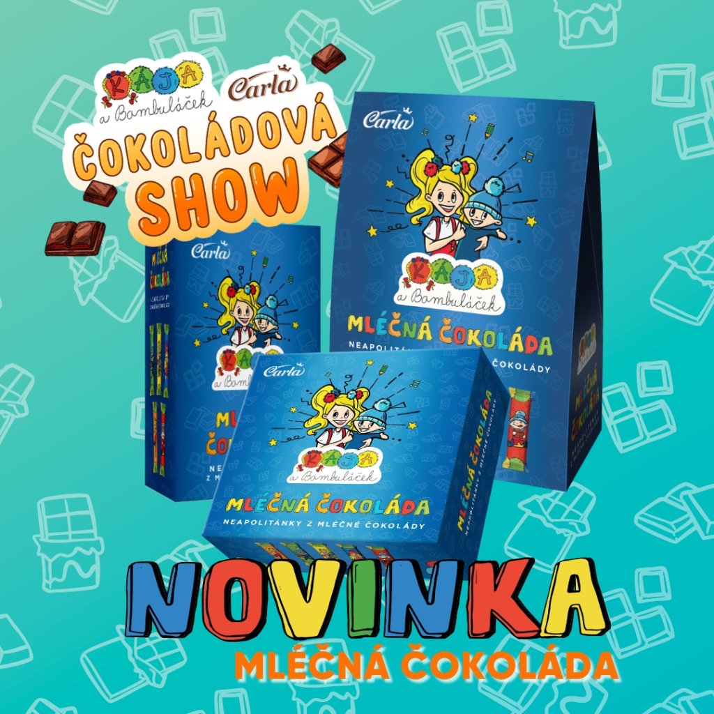 V této praktické krabičce najdete 10 lahodných mléčných čokoládek z české čokoládovny Carla, která je partnerem podzimní tour Kája a Bambuláček – Čokoládová show. 🎭🍫