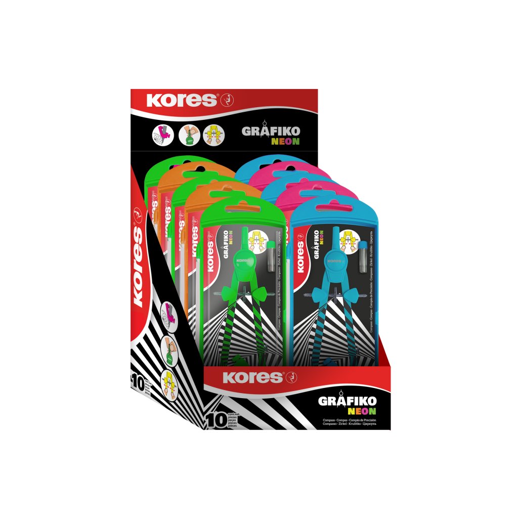 Kovové kružítko Grafiko - 4 neonové barvy